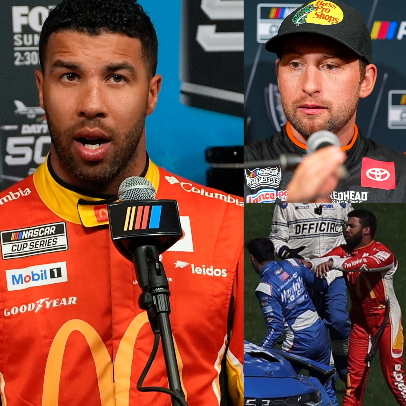 “Effective immediately,” Meyers announced, “both Bubba Wallace and Chase Briscoe are suspended indefinitely pending investigation.” The crowd gasped as if lightning had struck the entire stadium.